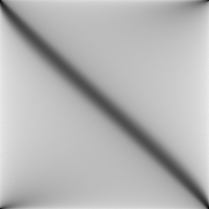 To create this heatmap, we sampled 1,000,000 permutations of length 300 uniformly at random. The color of the point \((i, j)\) represents how many permutations have value \(j\) at index \(i\) (darker = more).